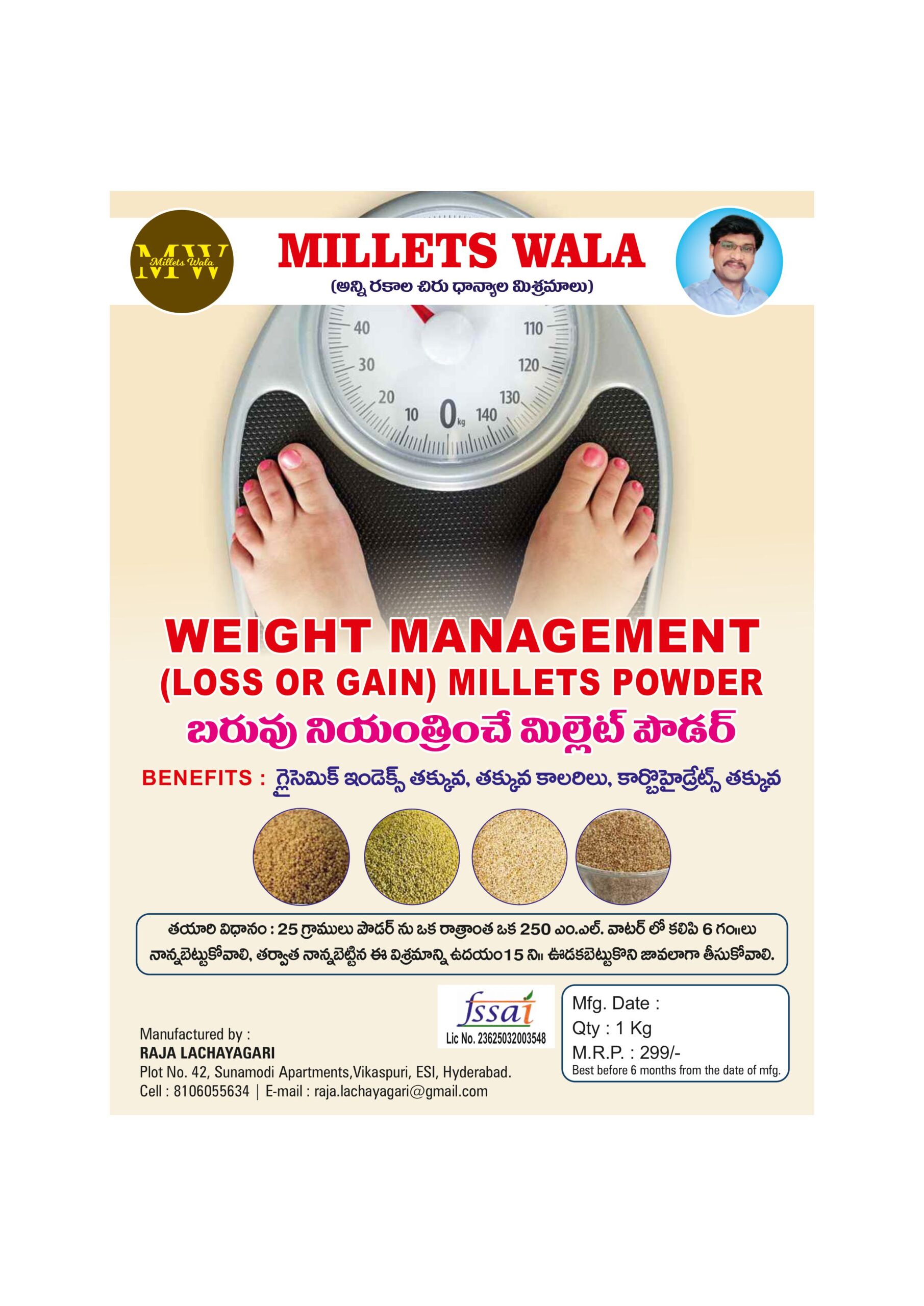 Price: ₹299/- per kg Usage: For weight loss – take before meals with water; for gain – mix with milk or ghee-rich porridge.